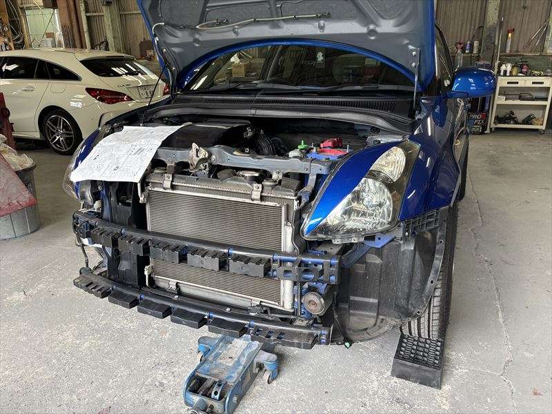 広島県 呉市 スイフトスポーツのフロントバンパーをエアロバンパーに交換!フェンダー耳カットでBNR32 GT-Rホイールを装着!