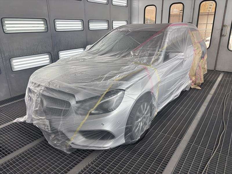 広島県 呉市 板金塗装 メルセデス・ベンツ Eクラスワゴン エアサス交換 クォーター修理