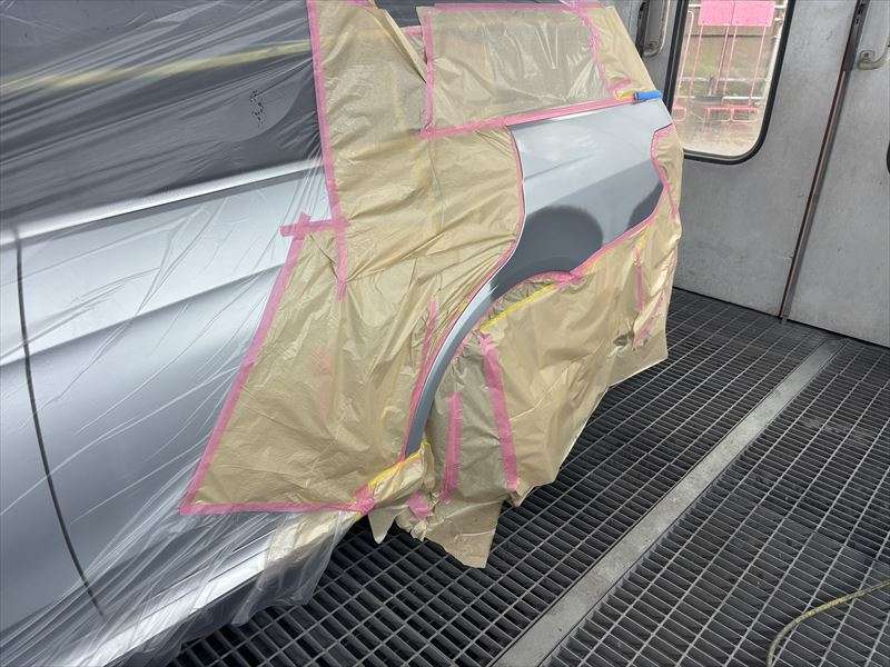 エアサスの修理は完了したので左クォーターの板金塗装に入ります。