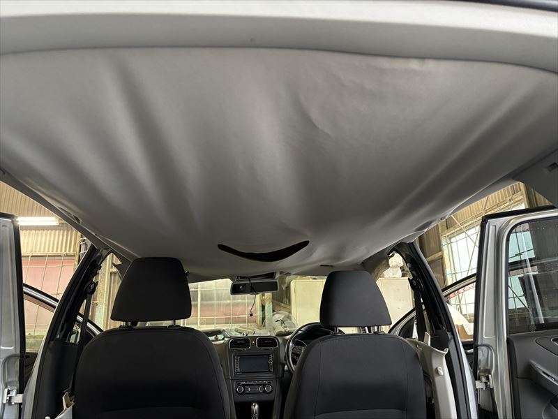 広島県呉市のお客様より、フォルクスワーゲン ゴルフのルーフ内張が剥がれてきたため修理依頼のご連絡をいただきました。車の天井部分は、長年の使用や気候条件の変化などで劣化しやすく、特に内張が剥がれるトラブルは多くのお客様のお困り事として寄せられています。こうした場合には、迅速な対応が必要です。当社では、多様な車種の内装修理に対応しており、熟練の技術者が丁寧に修理を行います。お客様の大切な愛車を元の状態に戻し、快適なドライブをサポートいたします。修理後は保証もついているため、修理後も安心してご利用いただけます。お困りの際は、ぜひお気軽にお問い合わせください。また、修理の過程についてもご予算やお時間に合わせたご提案をさせていただきます。