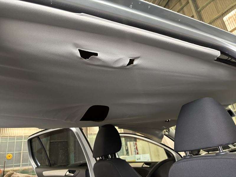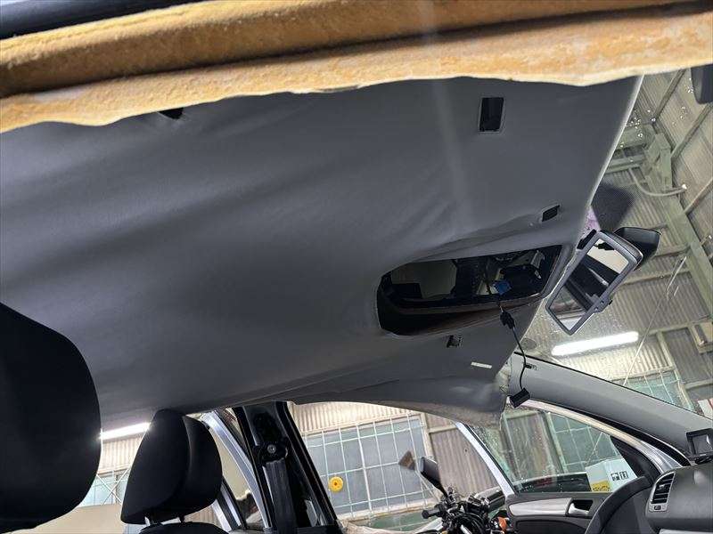 欧州車に多い「天井の内張剥がれ」。(株)井川自動車では、丁寧なヒアリングから高品質な張り替え施工まで、一貫した対応を行っております。