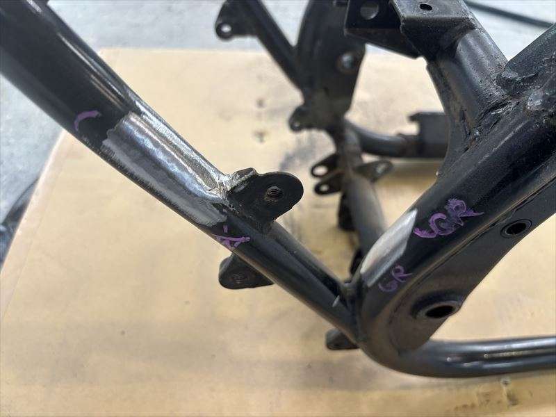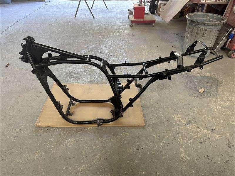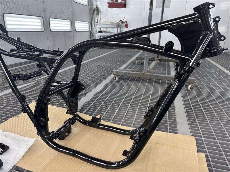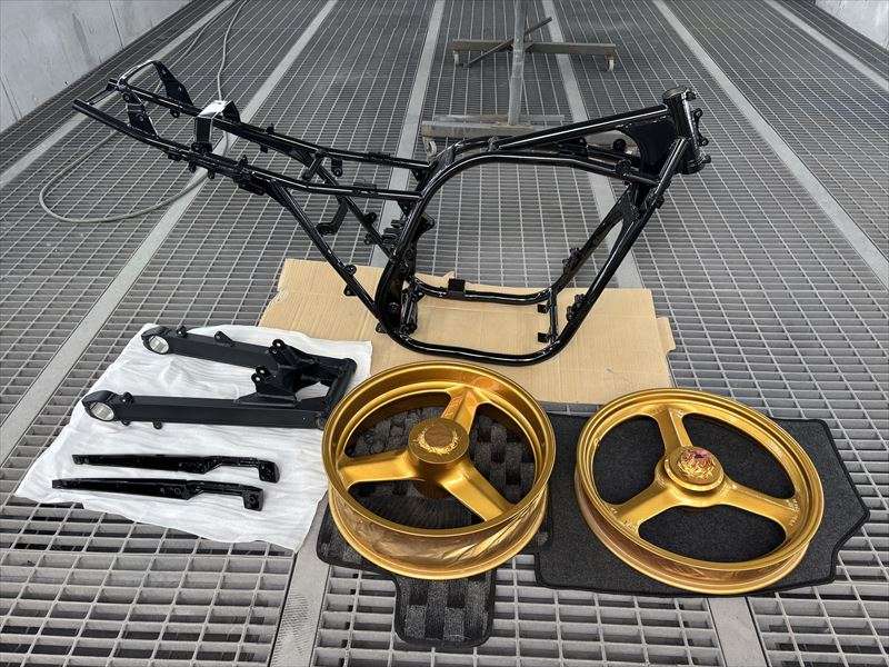 今回のGPZ750Fフルレストアでは、フレーム塗装に**パウダーコート(粉体塗装)**を採用しました。
