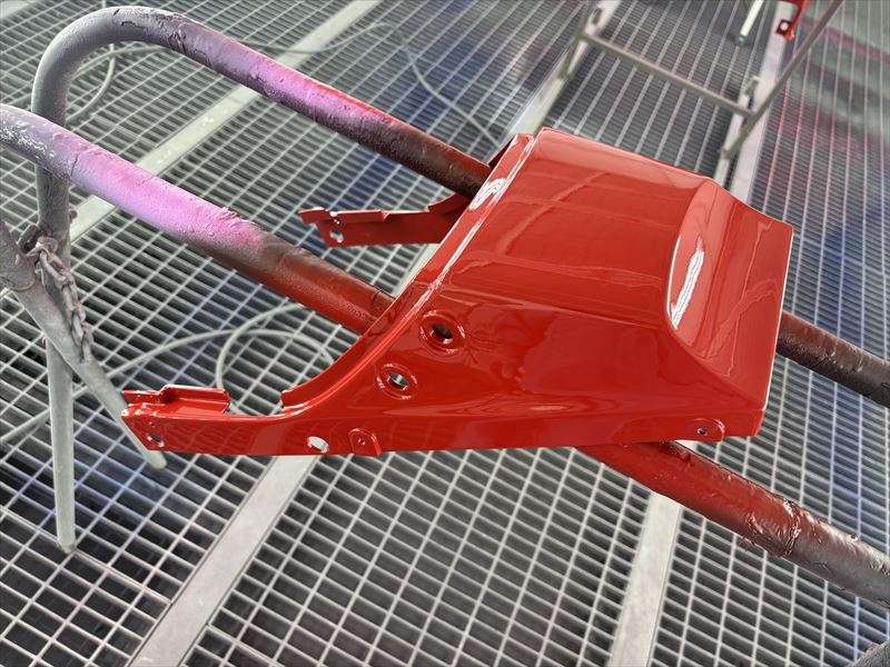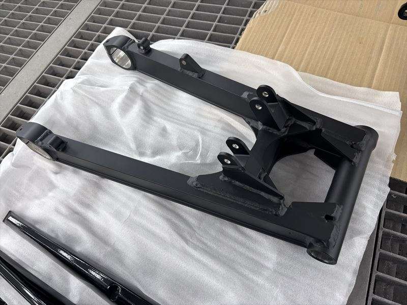 フレームに付随するスイングアームや他のパーツも全てパウダーコートで塗装します。
