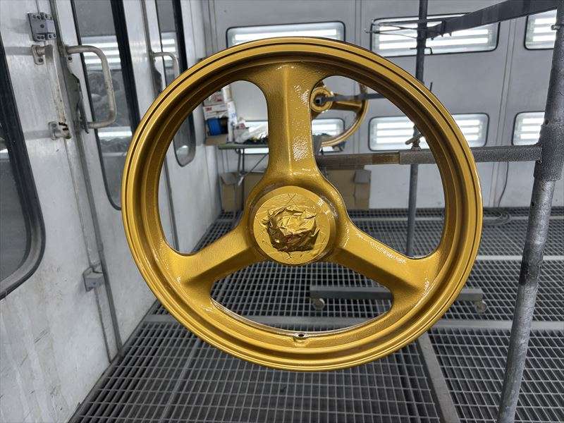 焼き付け後の塗膜を確認し、細部のタップ修正や磨きを行い組み立て準備へ。