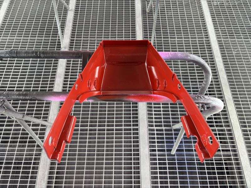 通常のウレタン塗装と違い、パウダーコートは静電気で塗料粉体を密着させ、高温焼き付けで強力に定着させる塗装方法です。