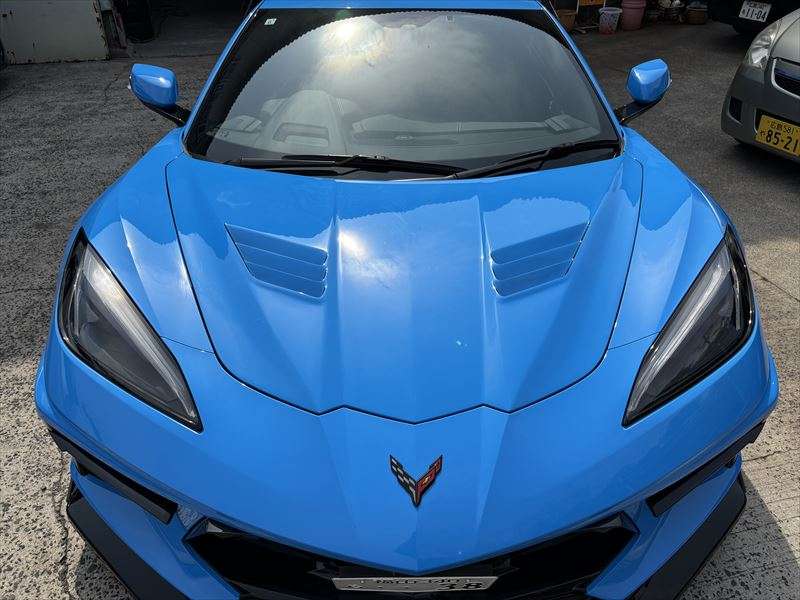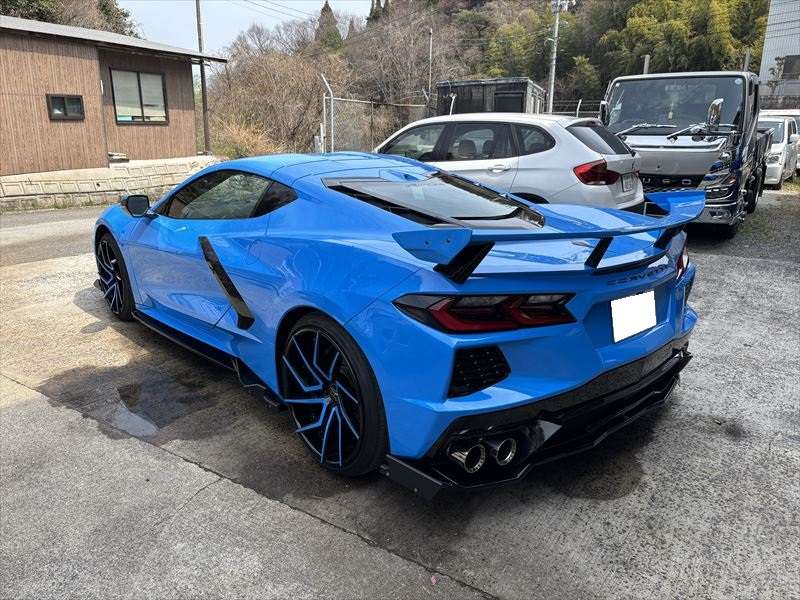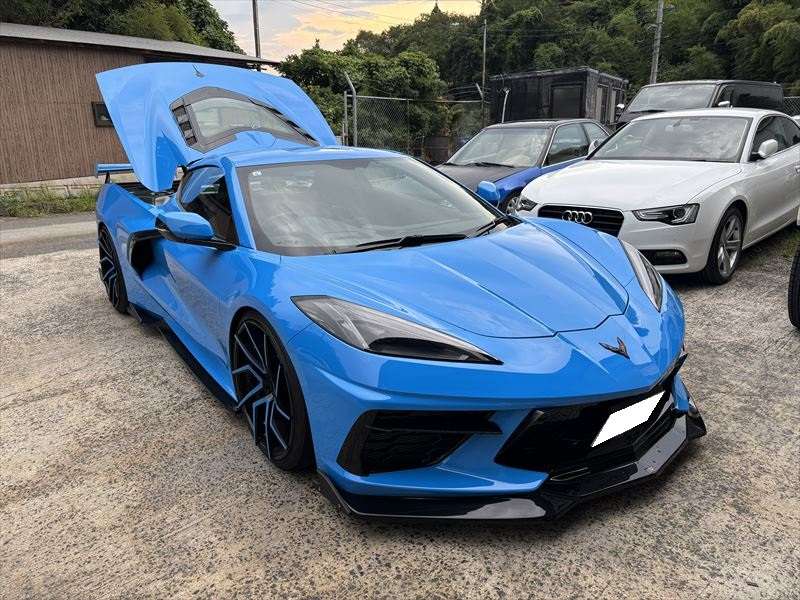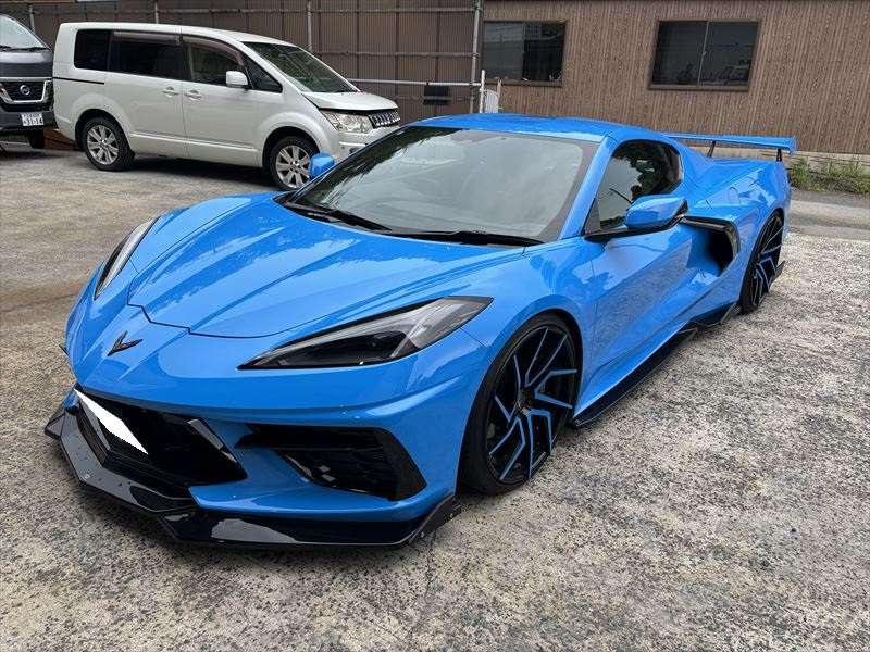 広島で外車カスタムをご検討中の方へ。 今回は、シボレー・コルベットC8のマフラー加工とカーボンボンネット交換の施工事例をご紹介します。