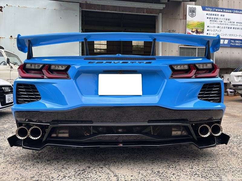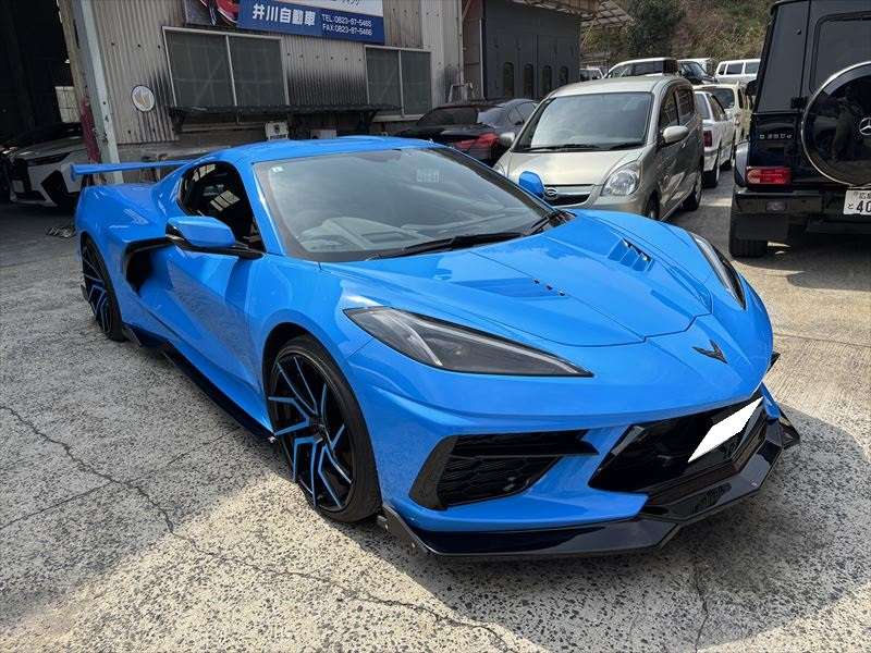 【コルベットC8】マフラー加工&カーボンボンネット交換|外車カスタムは井川自動車へ!