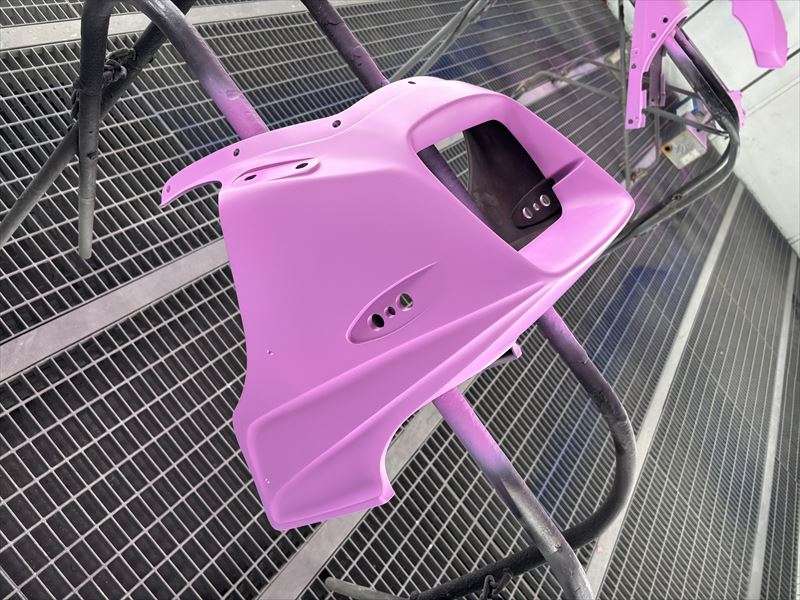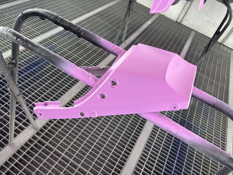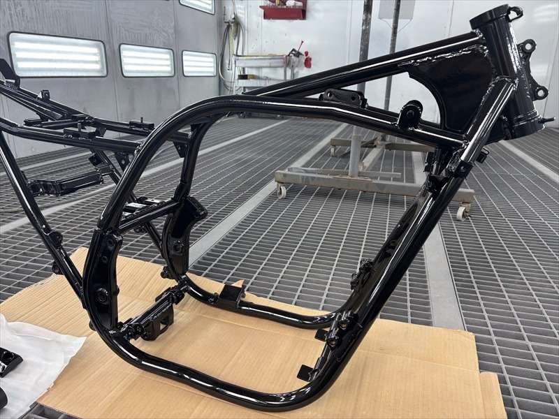 今回フレームやスイングアーム、細かい部品は全てパウダーコート(粉体塗装)で塗装しました。